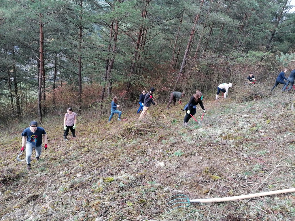 Hierfür bediente man sich eines aus der Gegend stammenden, artenreichen Saatguts. Auch die Aussaat auf einer künftigen Weide wurde durch die Freiwilligen im Rahmen ihrer Projektwoche durchgeführt.