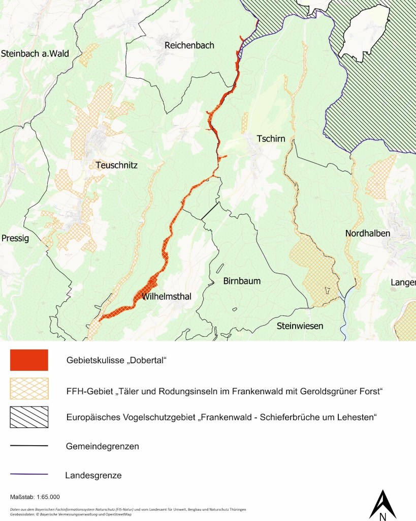 Das Dobertal ist ein typisches Frankenwaldtal. Der namensgebende Bach, die Dober, entspringt nördlich des Grünen Bandes in Thüringen und mündet etwa 10 km südlich der Landesgrenze zu Bayern in die Kremnitz. Sie fließt in Nord-Süd-Richtung in einem engen Tal, das nur einmal bei Tschirn von einer Querstraße unterbrochen ist.