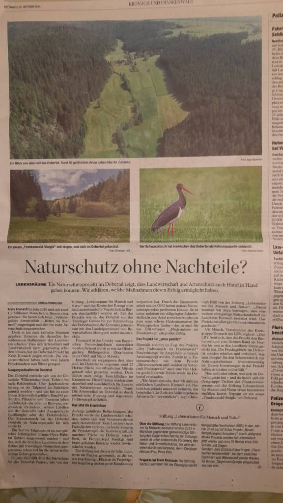 Presse- und Videobeiträge Video- und Radiobeiträge Radioreportage des BR vom 22.11.2023: „Weideprojekt: Aus Äckern werden 60 Hektar Naturschutzweiden“ Bericht des BR über das Projekt „Fischbacher Weidevielfalt“in der Sendung „Unser Land“ vom 26. Mai 2023 Imagefilm zum Naturschutzprojekt Dobertal Imagefilm der Glücksspirale über das Projekt „Fischbacher Weidevielfalt“ aus dem Jahr 2022 2024.10.22_Dobertal_Pressetermin_NP Pressebeitrag zum Dobertal vom 23.10.2024 Pressearchiv 2023 Pressearchiv 2022 Pressearchiv 2021 Pressearchiv 2020 Pressearchiv 2019 Pressearchiv 2018 Pressearchiv 2017